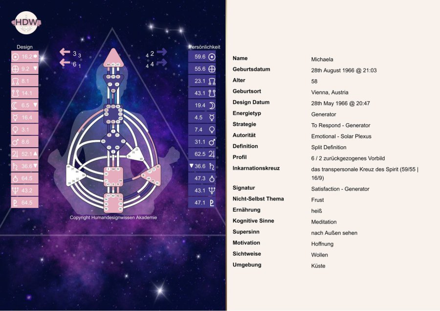 ein persönliches Reading mit mir, per Zoom (Dauer ca. 60 Min.), mit allen wichtigen Details von deinem einzigartigen angelegten Design. Nach Eingang deiner Überweisung vereinbaren wir den Termin für das Zoom-Reading, danach erhältst du die Videoaufzeichnung und den ausführlichen,