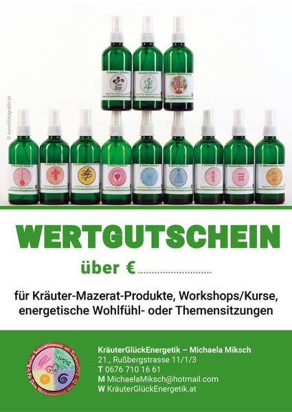 Kräuter-Mazerat-Produkte, Wohlfühl- oder Themensitzung, Workshops/Kurse oder energetische Bilder (Einzelstücke- von mir selbst gechannelt und gemalt).